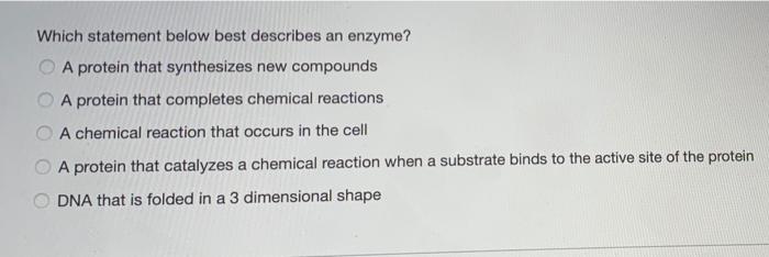 Solved Which Statement Below Best Describes An Enzyme A Chegg Com